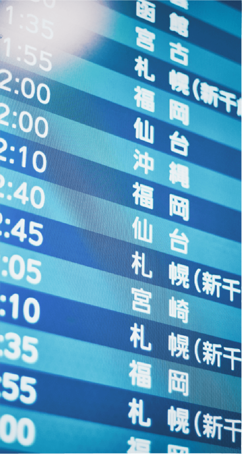 - 航空会社との強い連携により、当日の欠航や遅延等の急なトラブルにも対応させて頂きます。